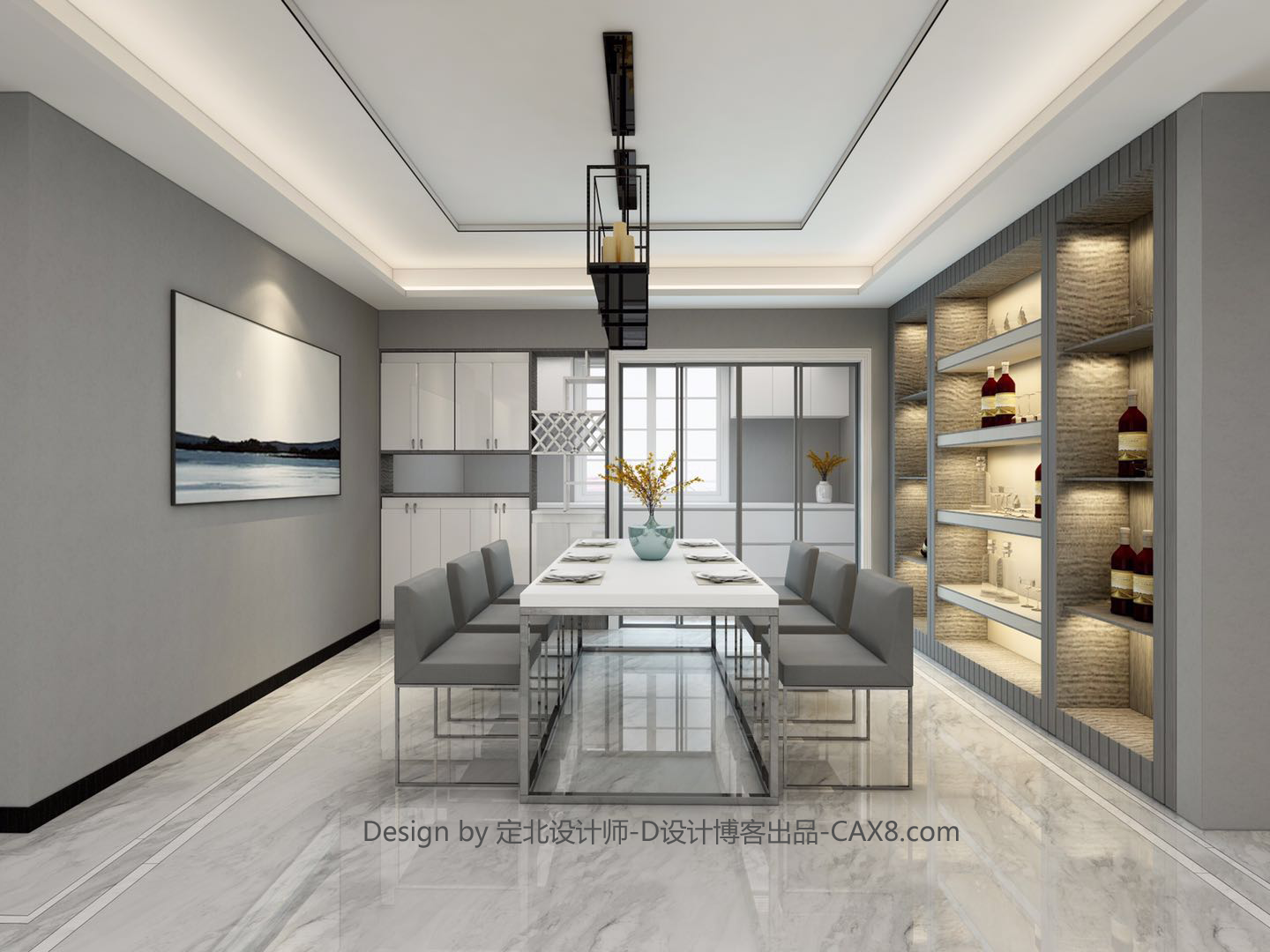 簡介這是黑白灰簡約工業風的客廳與餐廳效果圖